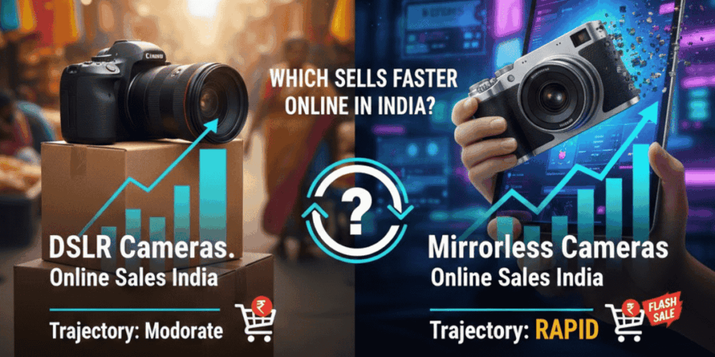 It is a fact that the Indian used camera marketplace is rapidly growing as more photographers or students as well as amateur photographers are opting for pre-owned cameras to cut costs but still maintain high-quality. But if you’re planning to resell your camera, the common question is: Which sells faster online in India DSLR or mirrorless? To help you make the right selling decision, here’s a clear comparison based on demand, features, portability, and user preference.